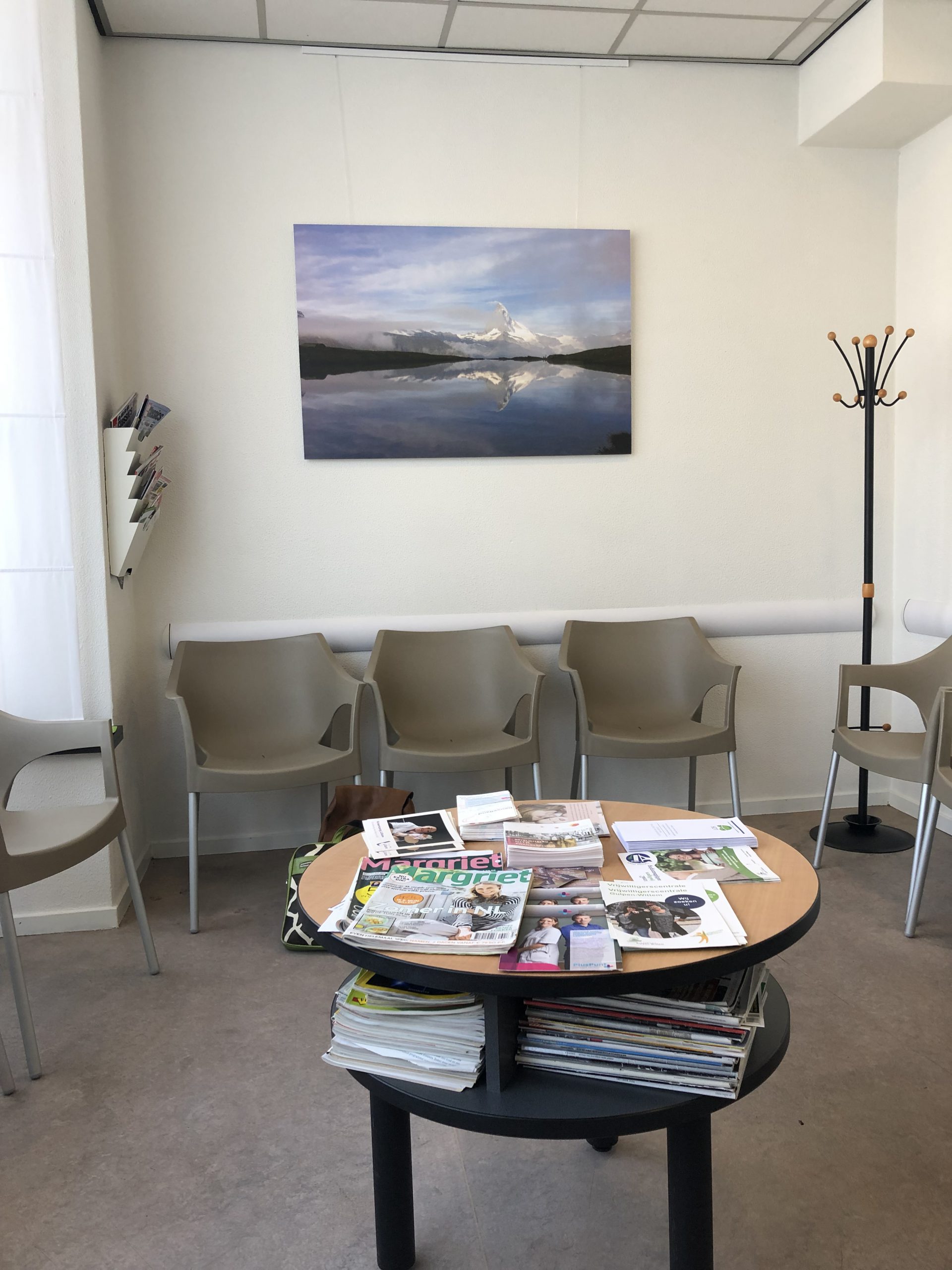 De wachtkamer van deze huisartsenpraktijk was toe aan een moderne frisse nieuwe inrichting.